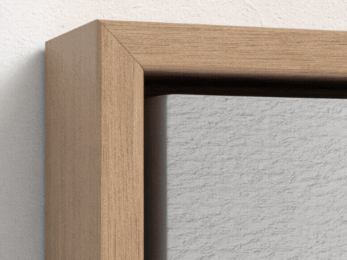 Fügen Sie einen hochwertigen Hartholz-Schweberahmen in sechs Farben hinzu. Der dünne Rahmen sitzt 8 mm vom Leinwandrand entfernt und erzeugt einen Schwebeeffekt, der Ihrem Giclée-Wandbild ein erstklassiges Aussehen verleiht.