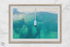 This modern beach print highlights the peaceful movement of the Pacific, with subtle color shifts beneath the surface. The floating pier leads your eye into the horizon, suggesting calm exploration and endless oceanic beauty. The beach is quiet and minimally occupied, offering a meditative sense of stillness from this perspective. Tropical tones and soothing textures make this piece ideal as blue wall art for a restful interior.